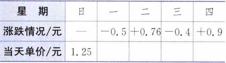 5. (生活应用)下面是蔬菜超市几天内白菜的单价涨跌情况记录表,请你把下表填写完整。