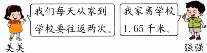 解析:强强家离学校1.65千米,他每天从家到学校要往返两次,所以要走4个1.65千米,即1.65×4=6.6(千米)。一周上学5天,要走5个6.6千米,即6.6×5=33(千米)。