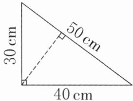 1. 如图,直角三角形的两条直角边分别是30 cm和40 cm,斜边长50 cm。斜边上的高是多少厘米?