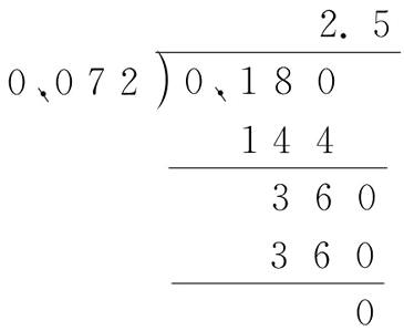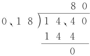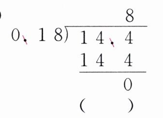 \begin{array}{r}8 \\0.18\enclose{longdiv}{14.4} \\144 \\\hline0\end{array} $