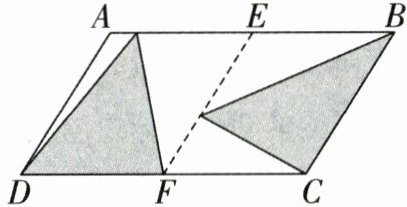 10. 如图,平行四边形 ABCD 的底 CD 是 10 cm,这条底上的高是 5 cm,AE = EB,DF = FC,则图中涂色部分的面积是(
