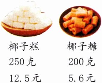 椰子糕:1000÷250×12.5=50(元)或12.5÷250×1000=50(元)