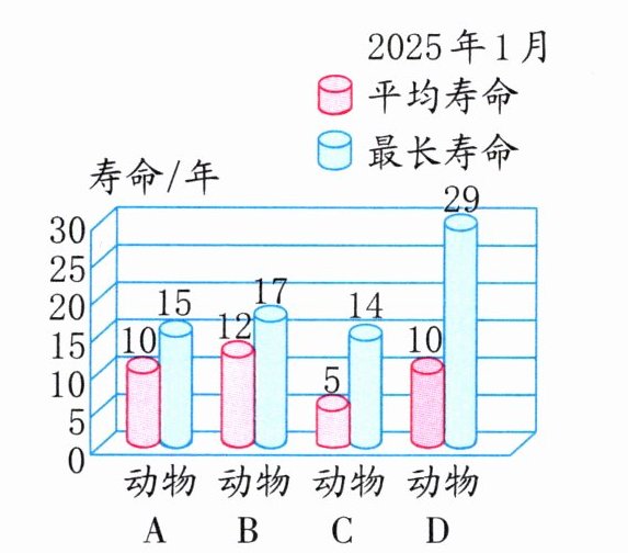 (1)(生物百科)如图,平均寿命与最长寿命相差最大的是动物( )。