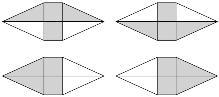 5. 在下面的图形中,再给 2 个图形涂上颜色,使涂色部分成为一个轴对称图形。有几种不同的涂法?