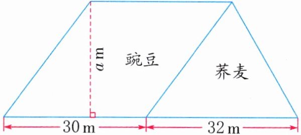 (1)30×a+32×a÷2=46a(m²) (2)当a=25时,46a=46×25=1150 种植豌豆和荞麦的总面积是1150m²