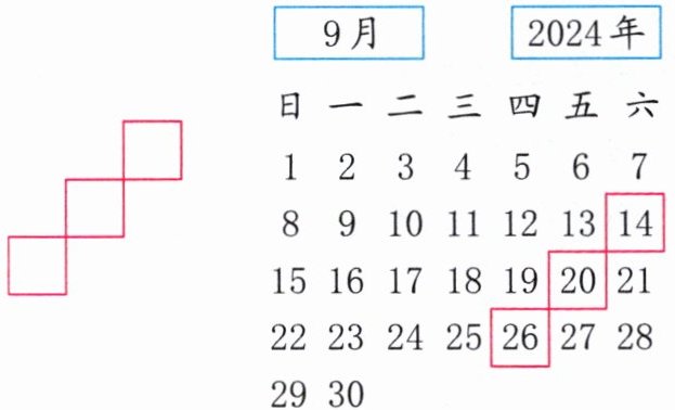 6. (探索规律)用下图中左边的图形去框$2024年9$月的月历。