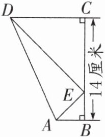 解析:由两条线段将梯形分成了三个三角形,并且有两个是等腰直角三角形,可知题图中梯形的上底与下底的和是14厘米,梯形的高是14厘米。