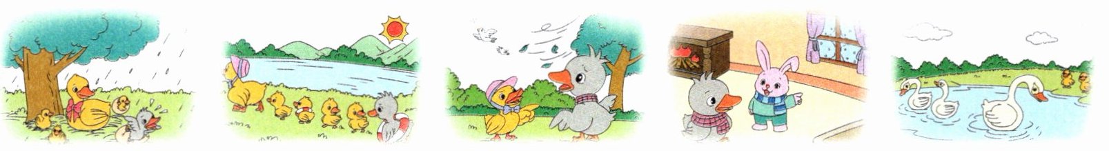 In summer, it is hot. The ducklings go swimming. The other ducklings think Hugo is ugly. They don’t want to play with him.