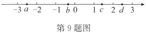 9. 有理数$a,b,c,d$在数轴上对应点的位置如图所示,这四个数中最大的是(