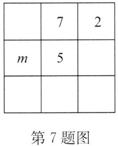 7. 幻方是古老的数学问题,我国古代的“洛书”中记载了最早的幻方——九宫图. 将数字 1~9 分别填入如图所示的幻方中,要求每一行、每一列以及两条斜对角线上的数字之和都是 15,则 $ m $ 的值为
