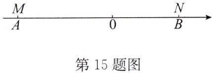 15. (10 分)如图,点 $ A $,$ B $ 在数轴上表示的数分别为 $ - 12 $ 和 8,两只蚂蚁 $ M $,$ N $ 分别从 $ A $,$ B $ 两点同时出发,相向而行. $ M $ 的速度为每秒 2 个单位长度,$ N $ 的速度为每秒 3 个单位长度.