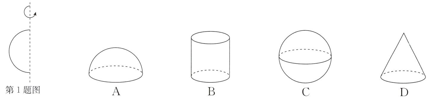 1. (2024·陕西)如图,将半圆绕直径所在的虚线旋转一周,得到的立体图形是(