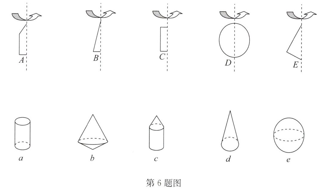 6. 将第一行的图形绕轴旋转一周,便得到第二行的几何体,用线连一连.