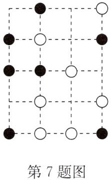 7. 如图,棋盘上有黑、白两色棋子若干个,找出所有“三颗颜色相同的棋子在同一直线上”的直线,这样的直线共有(
