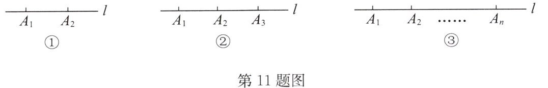 11. 如图①,直线$l上有2$个点,则图中有$2$条可用图中字母表示的射线,有$1$条线段.