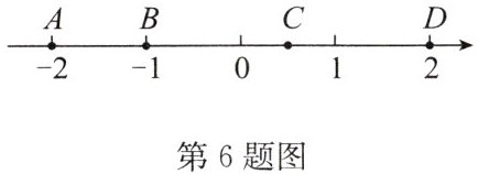 6. 如图,数轴上有$A,B,C,D$四个点,其中表示的数互为相反数的是(