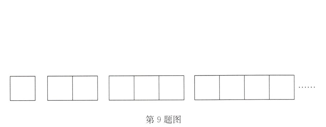 9. (2024·吴江区开学)如图,$4$根小棒能围成一个正方形,$7根小棒能围成2$个正方形,……,照这样的规律继续摆. 摆$5$个正方形需要小棒