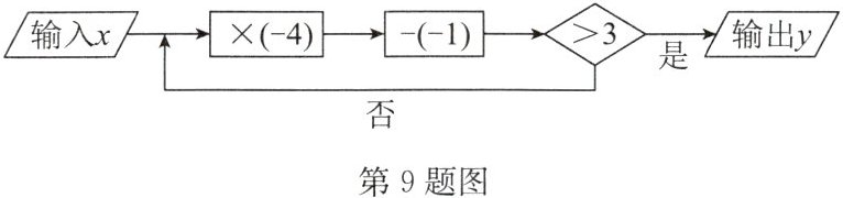 9. (2024·灌南县月考)程序框图的算法思路源于我国古代数学名著《九章算术》,如图所示的程序框图,若开始输入 x 的值为 4,则输出 y 的值是