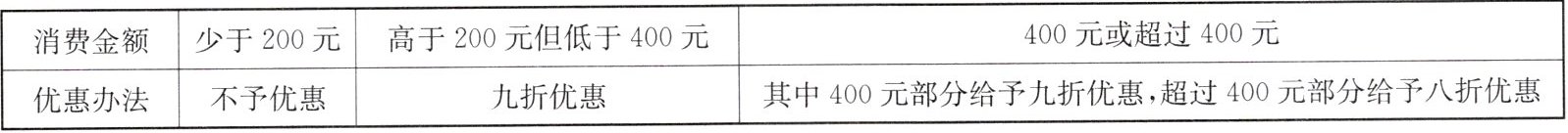 (2)解:由题意,得$400×90\% +80\% (x-400)=0.8x+40,$所以她实际应付款$(0.8x+40)$元.