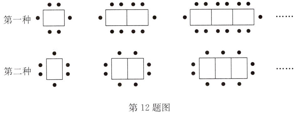 12. (15 分)某餐厅中,一张桌子可坐 6 人,有如图所示的两种摆放方式.