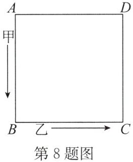 8. (2024·清江浦区开学) 如图,沿着边长为 $90$ 米的正方形,按 $A→B→C→D→A…$ 方向,甲从点 $A$ 以 $63$ 米/分的速度,乙从点 $B$ 以 $72$ 米/分的速度同时行走,当乙第一次追上甲时是在正方形的某个顶点处,则这个顶点是(