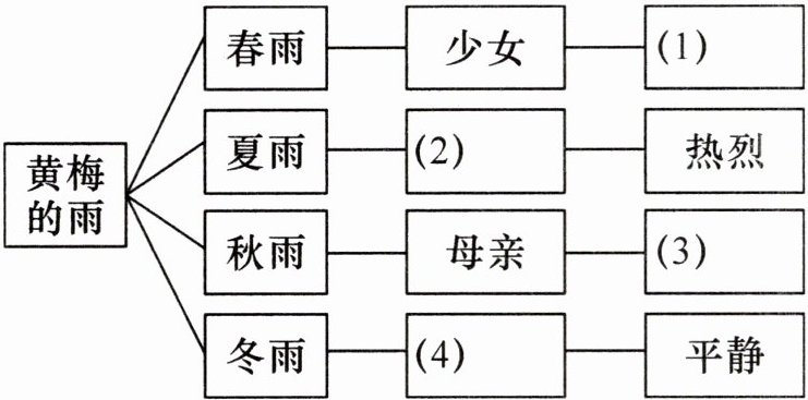 4. 文中四季之雨,“容貌”有别,“性情”各异。请你认真阅读,将下图补充完整。(4分)
