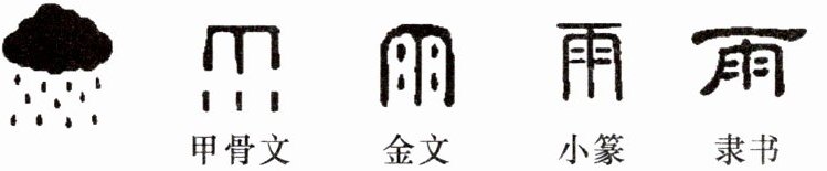 2. 活动中,同学们围绕“雨”字展开了探索,下面是小南搜集的关于“雨”字演变过程的图片。