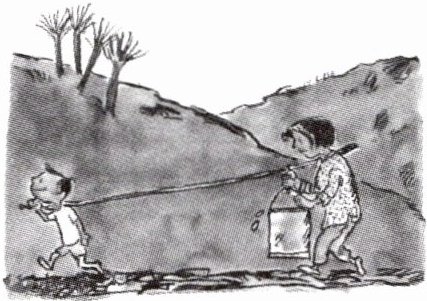 【示例】画面内容:这幅漫画整体是一个孩子和一位母亲在抬一桶水,前面的孩子一身轻松,大步走着;后面的母亲用手提着一个水桶,脚步沉重,行走艰难。寓意:生活本来不易,当你觉得轻松时,肯定是母亲在替你负重前行。启示:我们要理解母亲的不易,懂得感恩。