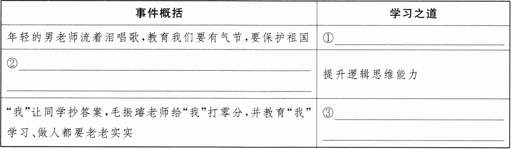 |“我”让同学抄答案,毛振璿老师给“我”打零分,并教育“我”学习、做人都要老老实实|③