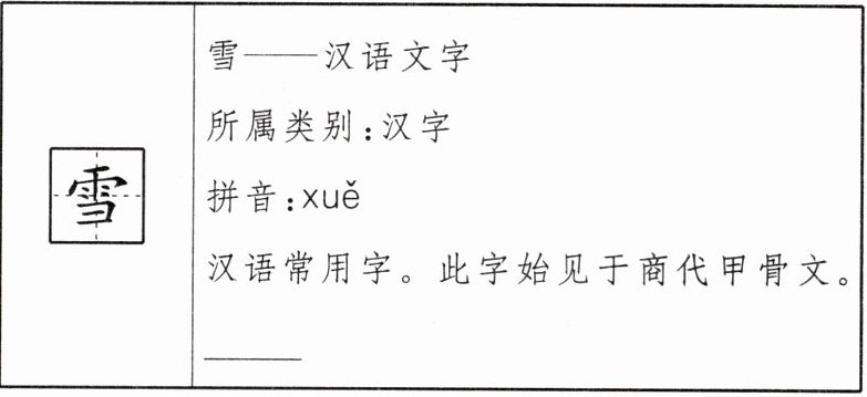 ②古字形由表示落下的“雨”和羽毛状的雪花组成