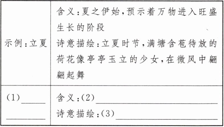 3. 小文打算根据冬日节气特点在手抄报上设计一段解说,请你仿照示例,从“冬雪雪冬小大寒”包含的节气中任选其一,写出这个节气的含义并进行诗意描绘。
