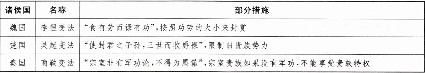 6. (2024·安徽中考)下表为战国时期一些诸侯国实行的变法。表中措施(