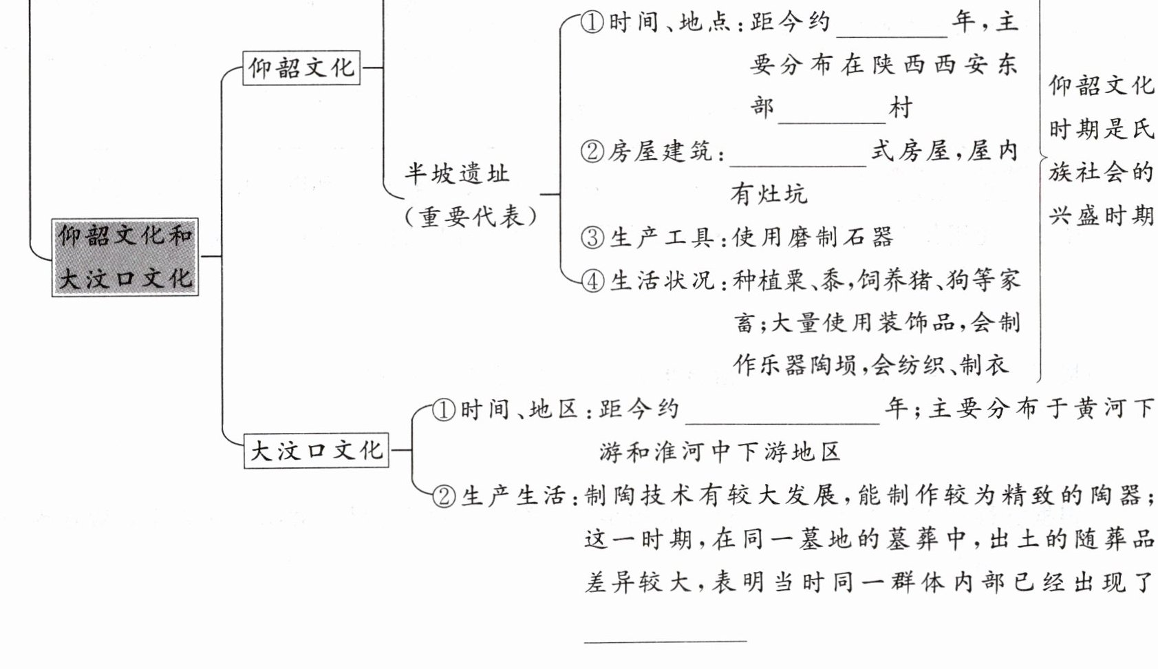 人工栽培 磨制石器 长江中下游 7000 长江下游 干栏式建筑 骨耜 7000—5000 黄河中游 6000 半坡 半地穴 5900—4400 贫富分化