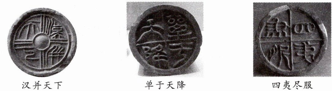10. 汉代瓦当(如图)种类丰富,纹饰精美,反映了当时的艺术审美、社会状况和思想意识形态。据图可知,这些瓦当(