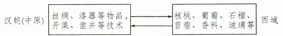 (3)主要原因:①汉代纺织技术先进,丝织水平很高,品种多;②张骞通西域,促进丝绸之路的开辟。(每点1分,共2分)意义:是古代东西方往来的大动脉,对于中国同其他国家和地区的贸易与文化交流,起到了很大的促进作用。(2分)