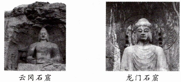 材料二:如果从艺术风格来说,云冈石窟的造型反映了北魏前期的生活,其雕像的线条粗犷洗练……后来北魏从大同南迁至洛阳,北魏政权为了更好地巩固统治和减少民族冲突,全面汉化……这时候龙门石窟的雕像造型开始圆滑细致,呈现汉族文化特有的审美观。
