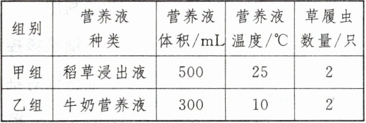 11. 【教材习题改编】某同学探究“不同营养液对草履虫的培养效果”,实验设计如下。下列对该实验给出的改进建议不合理的是 (