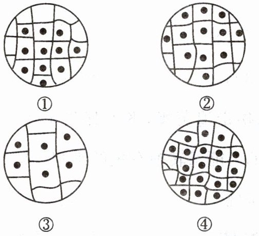 4. 如图是同一显微镜观察同一植物组织标本 4 次得到的图像,下列推测正确的是 (