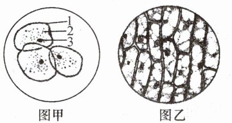 6. 如图为小宇在显微镜下观察到的人口腔上皮细胞和洋葱鳞片叶内表皮细胞,下列相关叙述正确的是 (