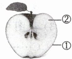 5. 将苹果纵向切开时,会看到如图所示的结构,图中的①和②分别属于 (