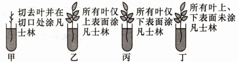 B.甲与丁对照可探究叶是否为植物进行蒸腾作用的器官