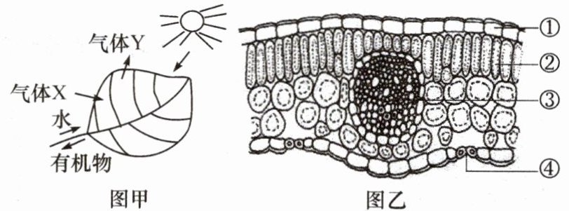 (填序号)。(2)叶是进行光合作用的主要器官。若图甲中的气体Y是光合作用释放到空气中的气体,则气体Y是