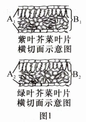 (1)图1是紫叶芥菜和绿叶芥菜叶的横切面示意图,在显微镜下结构A₁呈紫色、A₂无色透明,结构B₁、B₂均呈绿色。花青素主要存在于叶片[______]