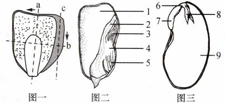 (1) 图二是玉米种子的纵剖面,该剖面是用刀片沿着图一所示的