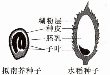 7. (2023·苏州)如图为拟南芥和水稻的种子结构示意图。推测二者在萌发时,提供营养的主要结构分别是(