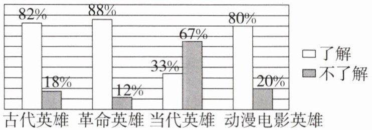 (1)(示例)当前,中学生对古代英雄、革命英雄、动漫电影英雄了解较多,对当代英雄了解较少。