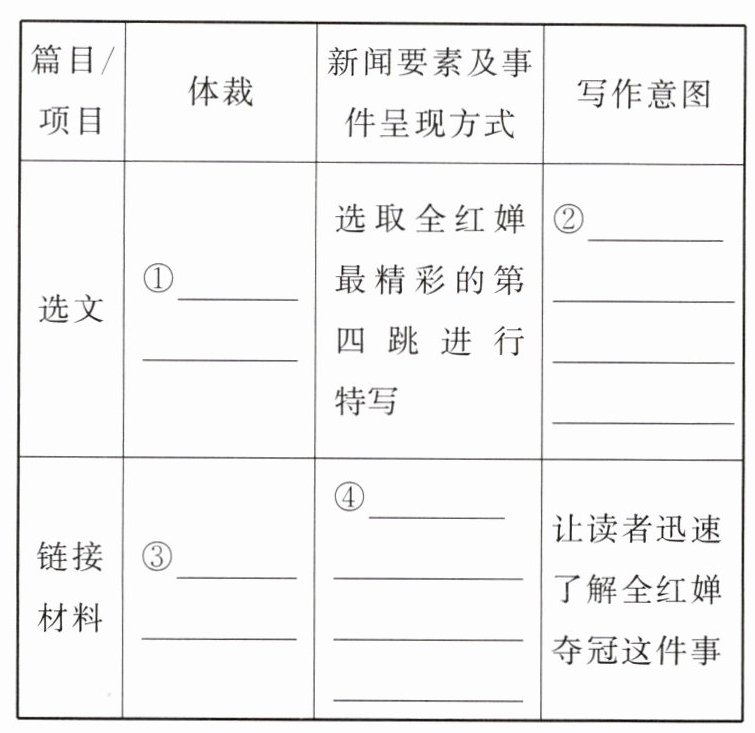 12.①新闻特写 ②让读者在知晓“全红婵夺冠”的同时,详细了解“全红婵是怎样夺冠的” ③消息 ④直接报道运动员全红婵以优异成绩夺得冠军这件事