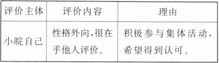 )①小皖采取多种方法来认识自己 ②小皖比较看重他人对自己的评价 ③统计结果会使小皖更加不自信 ④小皖应客观、理性对待他人评价