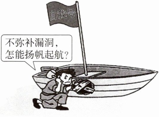 解析:选 C。本题考查做更好的自己。漫画中,不弥补漏洞,怎能扬帆起航?告诉我们要主动改正缺点,做更好的自己,故 C 说法正确;材料没有体现出接纳自己的优点的内容,故 A 不符合题意;光看到自己的缺点不够,重要的是要勇于改正缺点,故 B 说法错误;材料没有体现出接纳自己与他人的不同之处,故 D 不符合题意。故本题选 C。