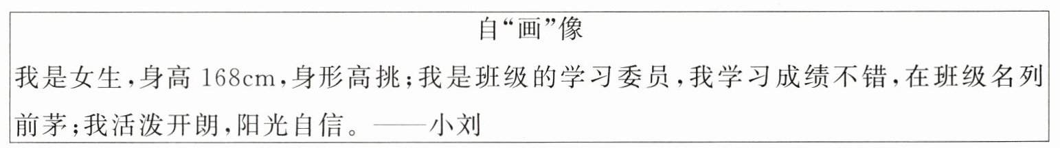 8. 小刘善于通过对自我的全面分析来认识自己。下面是她的《自“画”像》,从中我们可以看出小刘认识自己的角度有(
